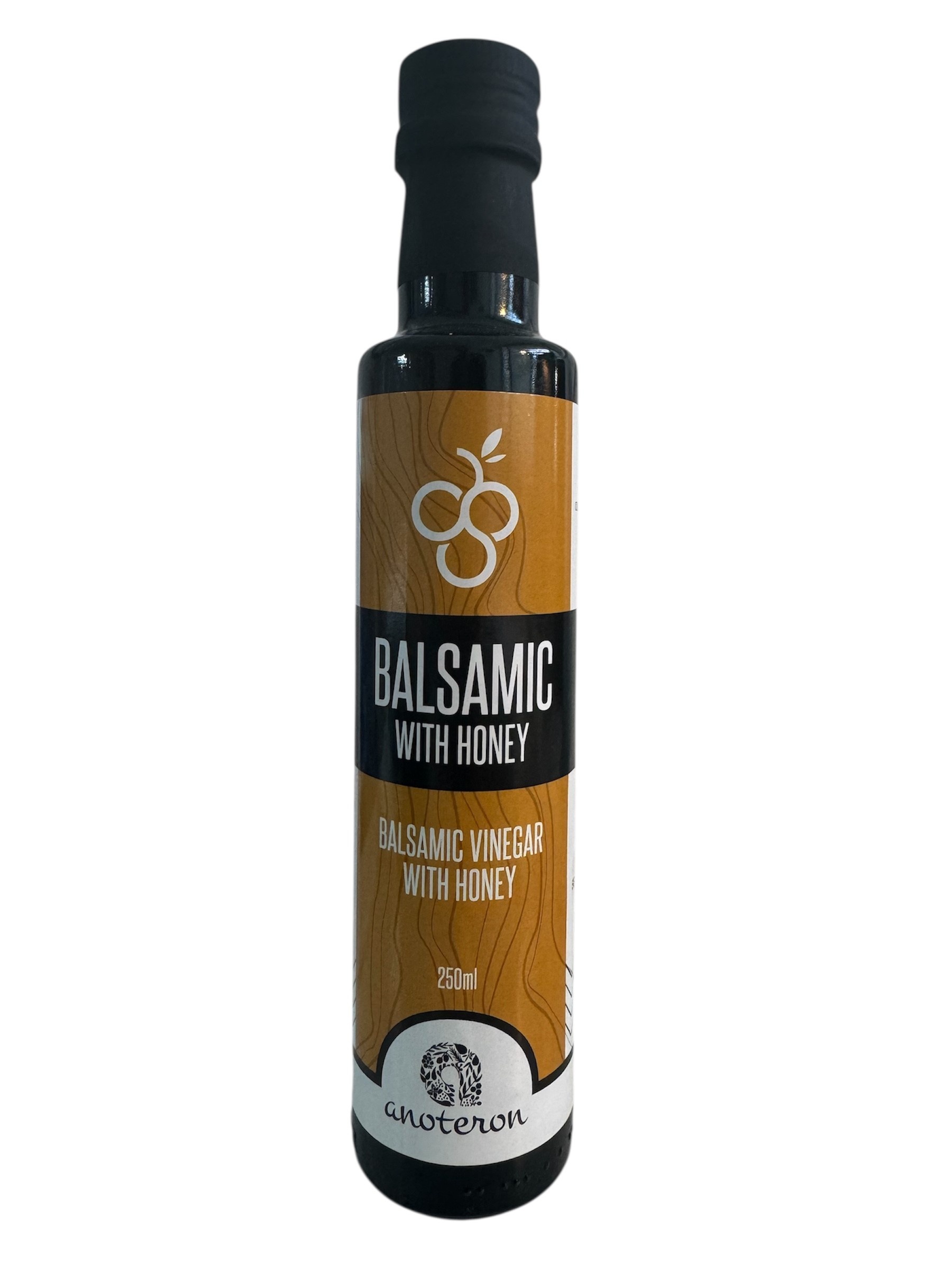 Honig-Balsamico Essig 250ml Ein wahres Geschmackserlebnis: Unser Honig Balsamico Essig verbindet die milde Süße von Honig mit der feinen Säure eines edlen Balsamicos. Der ideale Begleiter für frische Salate, Käseplatten oder zur Veredelung von Saucen und Marinaden. 100 % naturbelassen ohne Konservierung und Farbstoffe. Kühl und trocken Lagern. Zutaten: Balsamico Essig, Thymianhonig 10% Hergestellt und Verpackt: Anoteron KRITINVEST Tatjana Schefer 5,3RD September Str. – GAZI Heraklion Kreta Griechenland